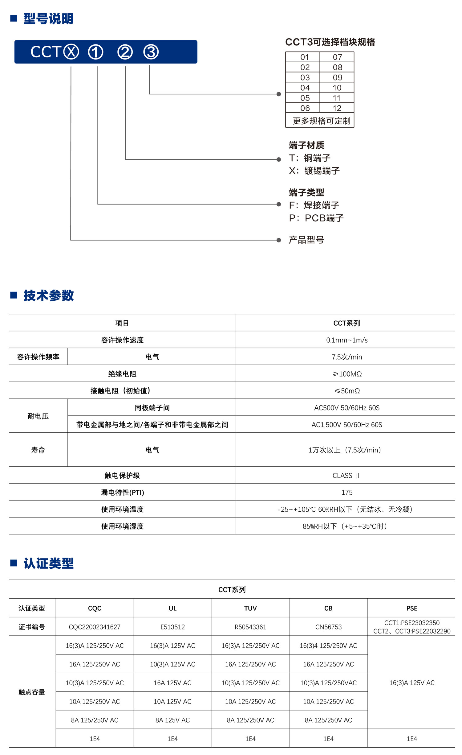 CCT3可选择档块规格。